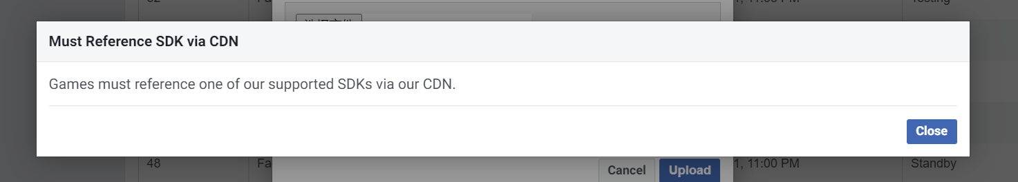 如果没有引用sdk,直接上传的话,会提示:Must Reference SDK via CDN